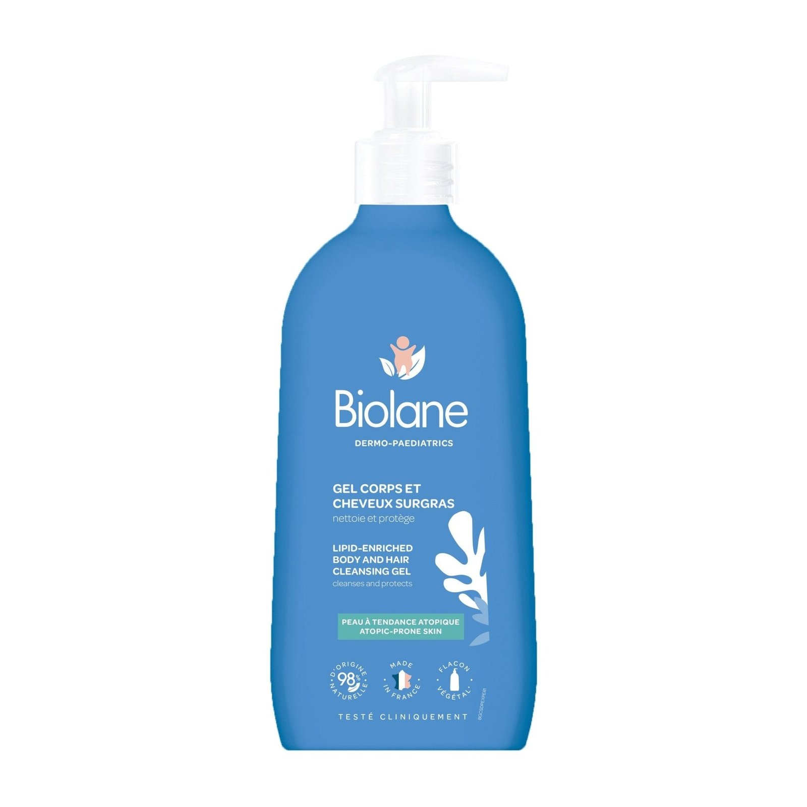 Formulated without soap and without sulphates, its high-tolerance formula is perfectly adapted to delicately cleansing babies dry, atopic-prone skin while comforting them and without stinging the eyes. Its formula made of 98% natural origin ingredients is enriched in glycerine, a nourishing and softening super fatting agent, which helps retain moisture within the skin. Fragrance free.