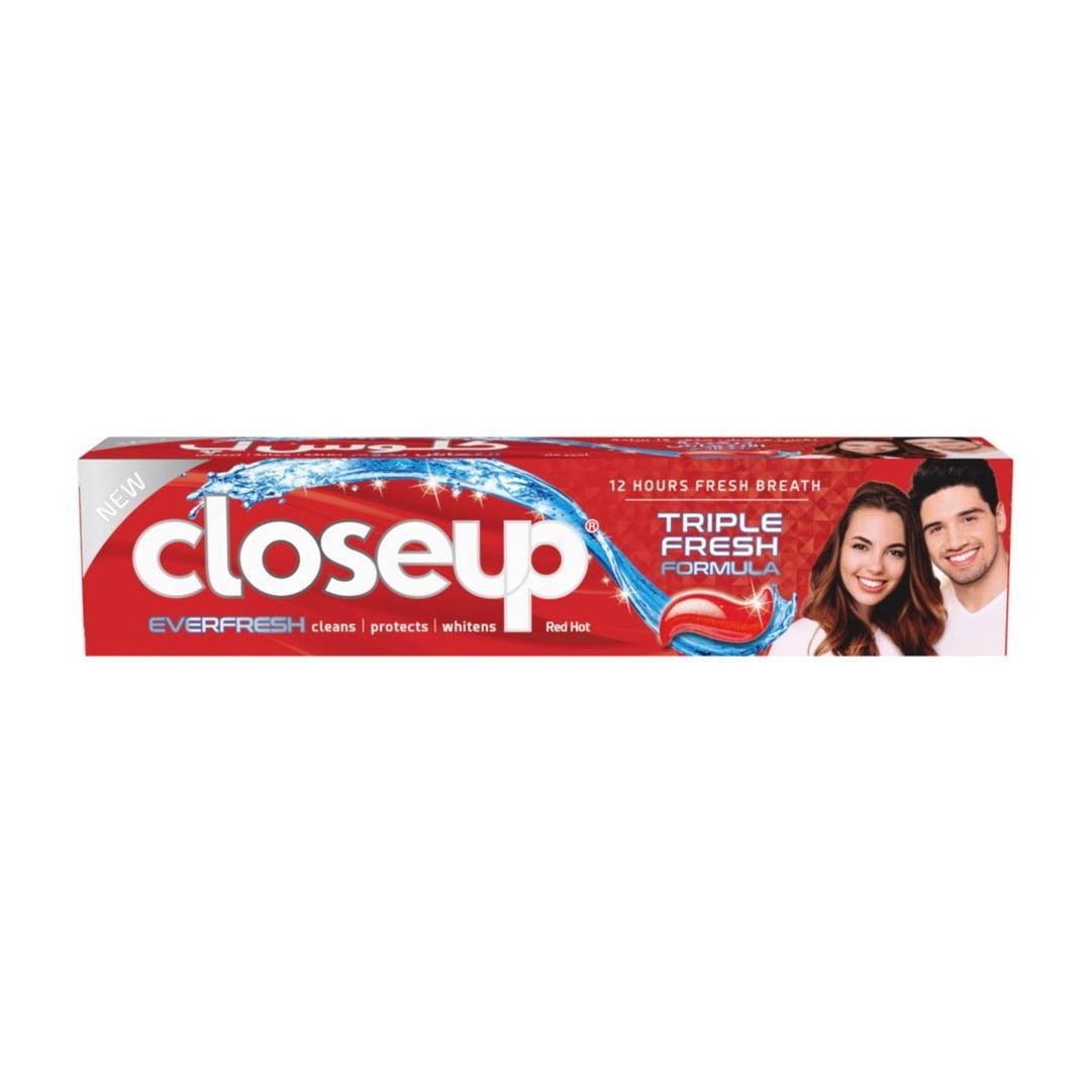 Close up Triple Fresh Formula Red Hot gel toothpaste combines the efficacy of 3 powerful ingredients, purifying gel, antibacterial mouthwash, and microshine crystals to keep you protected and fresh.