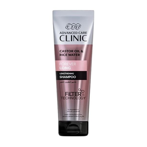 - Eva Advanced Care Clinic Castor Oil & Rice Water Forever Long Lengthening Shampoo with Filter Technology helps to prevent harsh minerals and metals, present in tap water, to bind with your hair.