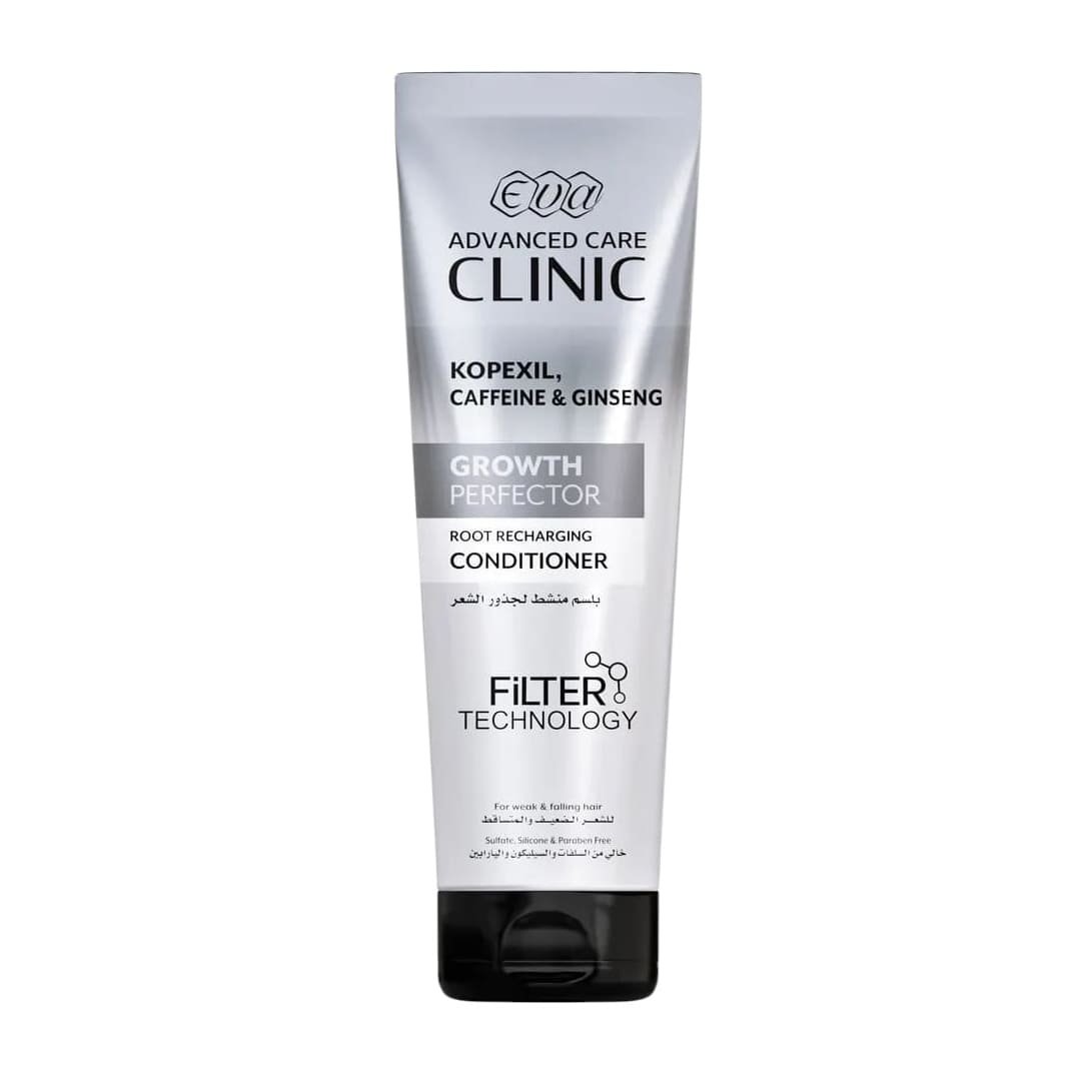 - Eva Advanced Care Clinic Kopexil, Caffeine & Ginseng Growth Perfector Root Recharging Conditioner with Filter Technology helps to prevent harsh minerals and metals, present in tap water, to bind with your hair.