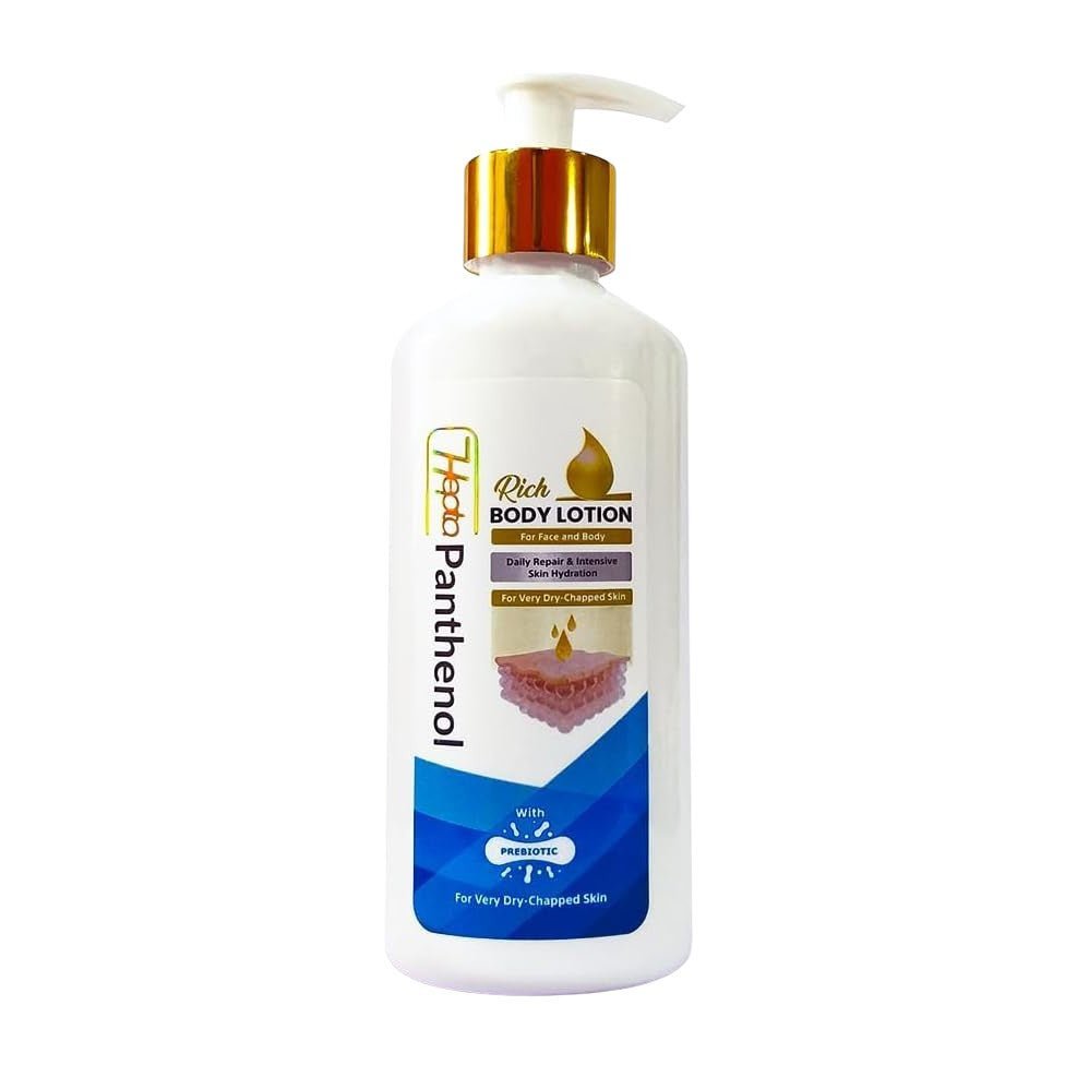 Hepta Panthenol Body Lotion – Rich is a fast-absorbing, creamy, non-greasy lotion for the face and body to provide immediate and deep hydration for complete relief to extremely dry, cracked skin.