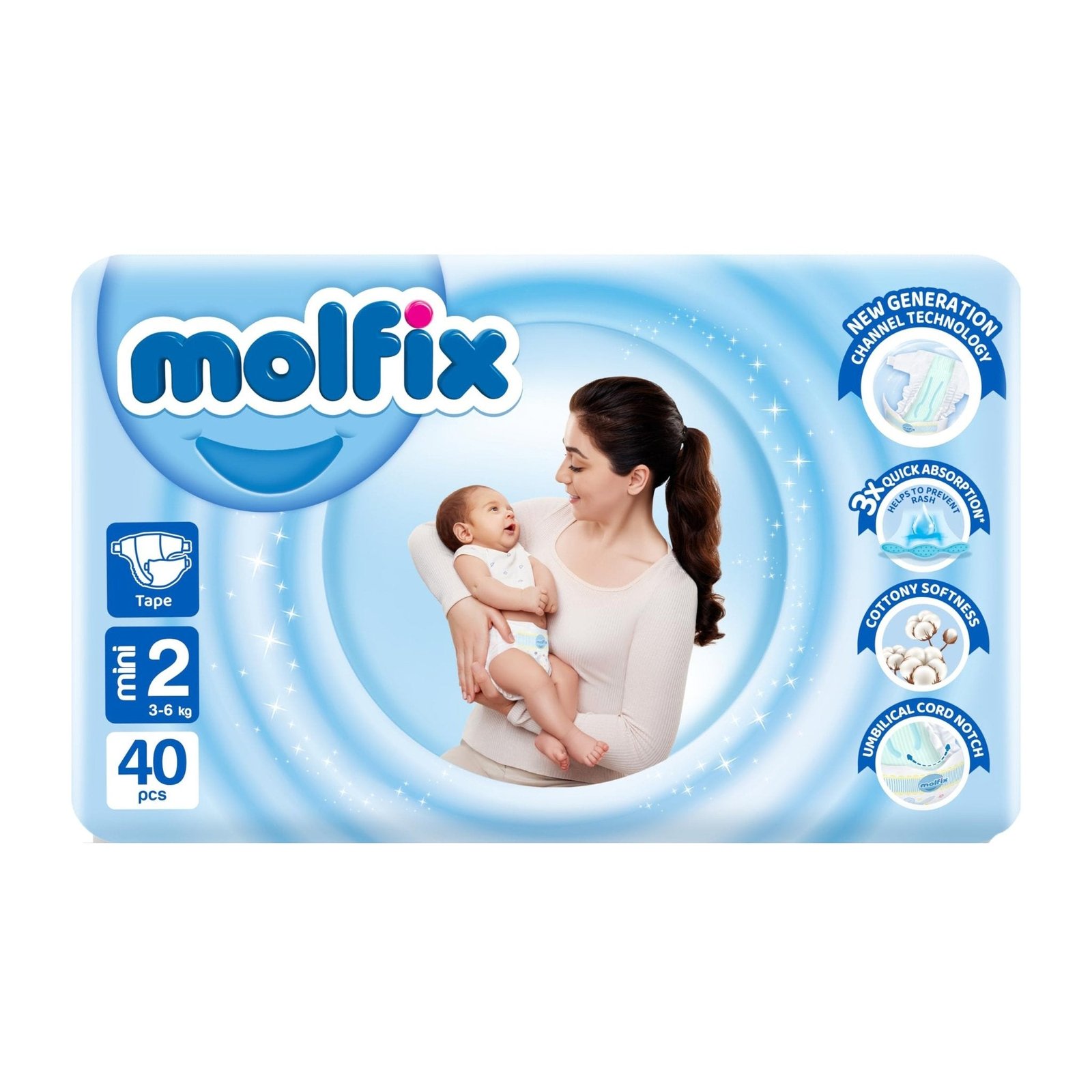 Molfix baby diapers are produced with utmost care, they are extremely gentle on your baby’s sensitive skin, and their green absorbent layer provides perfect dryness while the outer surface of the diaper protects the skin. Thanks to water-resistant barriers that prevent leaks, Molfix gives babies full protection and keeps their skin dry and healthy around the clock.