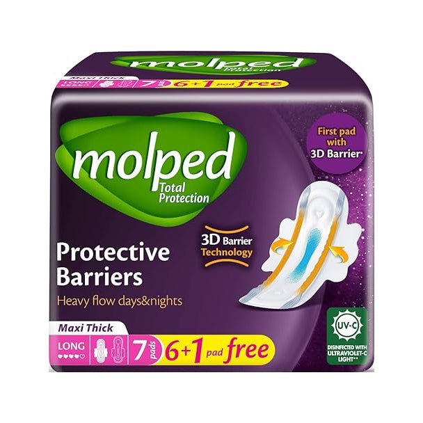 - Molped total protection pad is the first and only feminine pad in Egypt with 3D barrier technology to prevent leakage