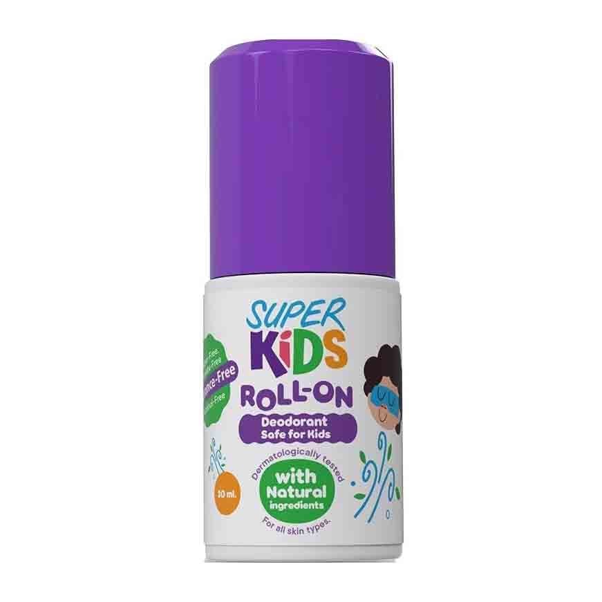 Superkids Roll on deodorant, for kids from 9-15 years, is a safe, natural deodorant that is Aluminum free, Paraben free, phthalates free, Alcohol free, talc free and Fragrance free to provide a long-lasting protection against sweat and smelly odors.
