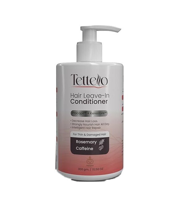 Tettello Anti Hair Loss Leave In formulated with Rosemary, Caffeine and Procapil to help reduce hair loss, stregnthen hair strands and hydrate for a healthier and fuller hair.